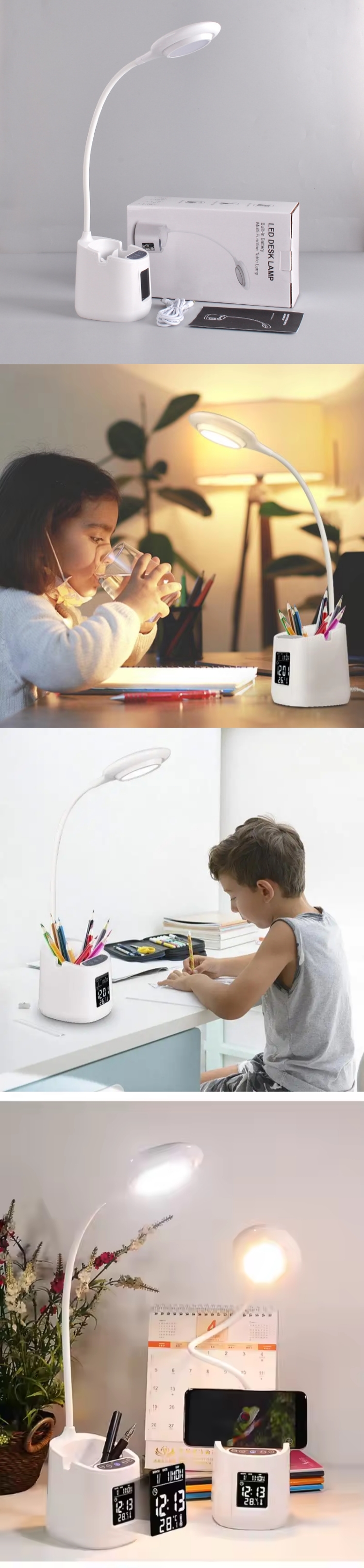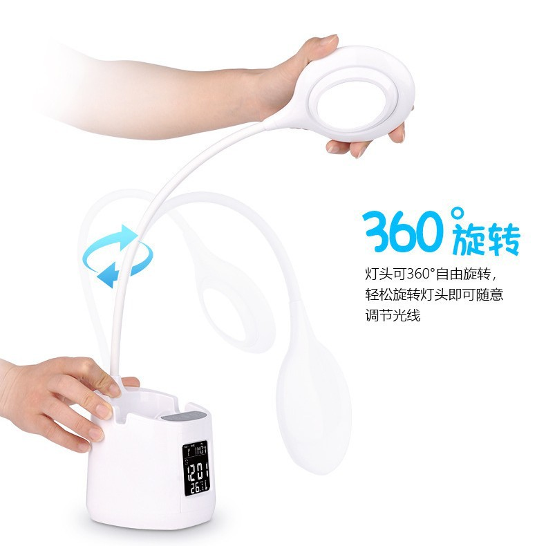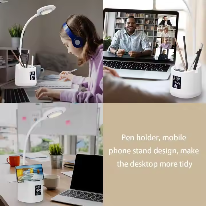 Table Lamp + Digital Alarm Clock + Pen Holder + Phone Holder