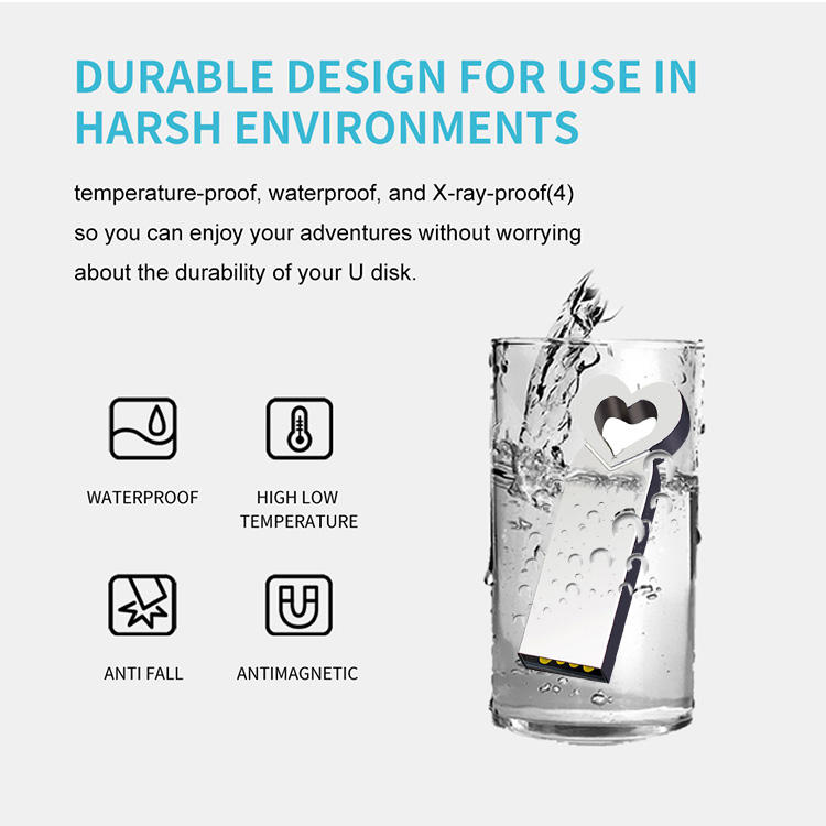 Heart shape mini metal USB flash drive waterproof USB stick