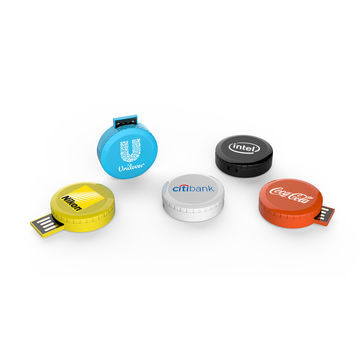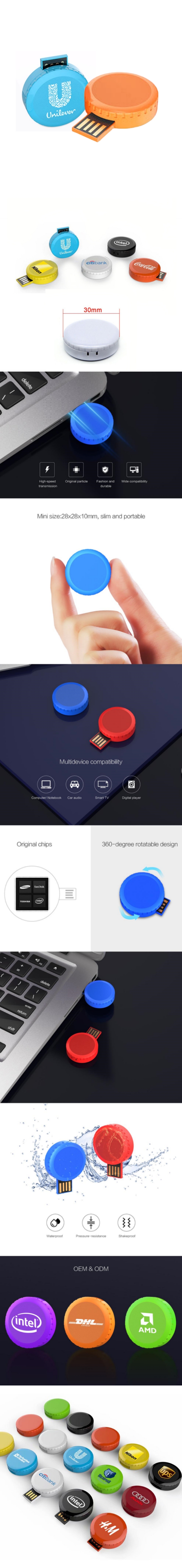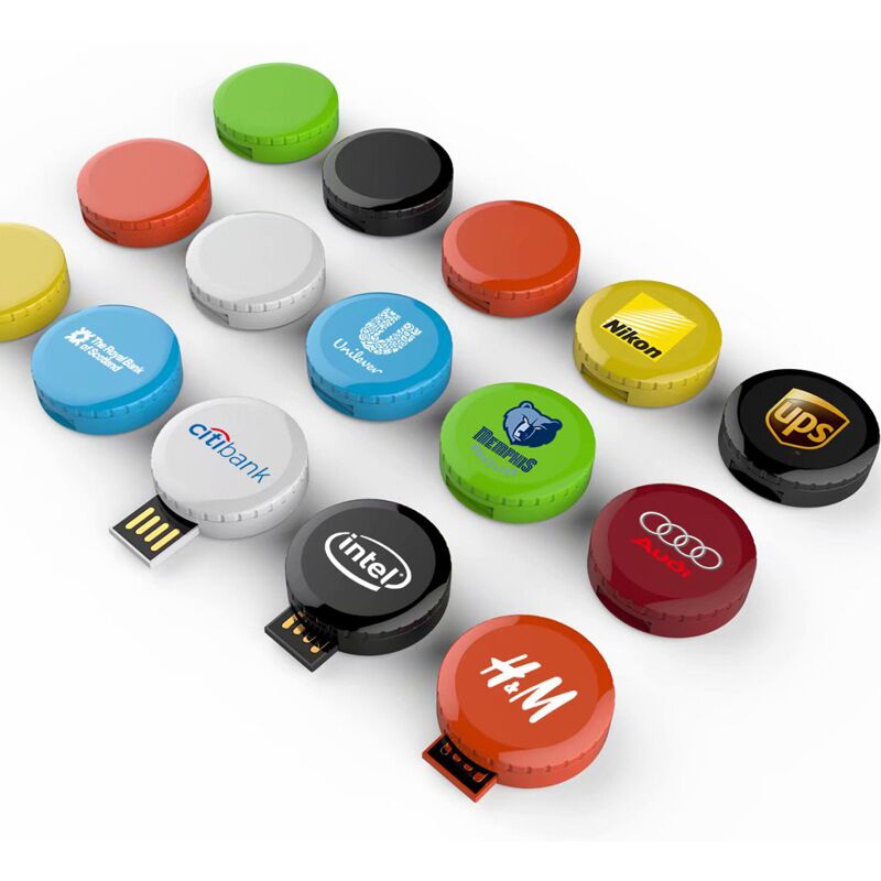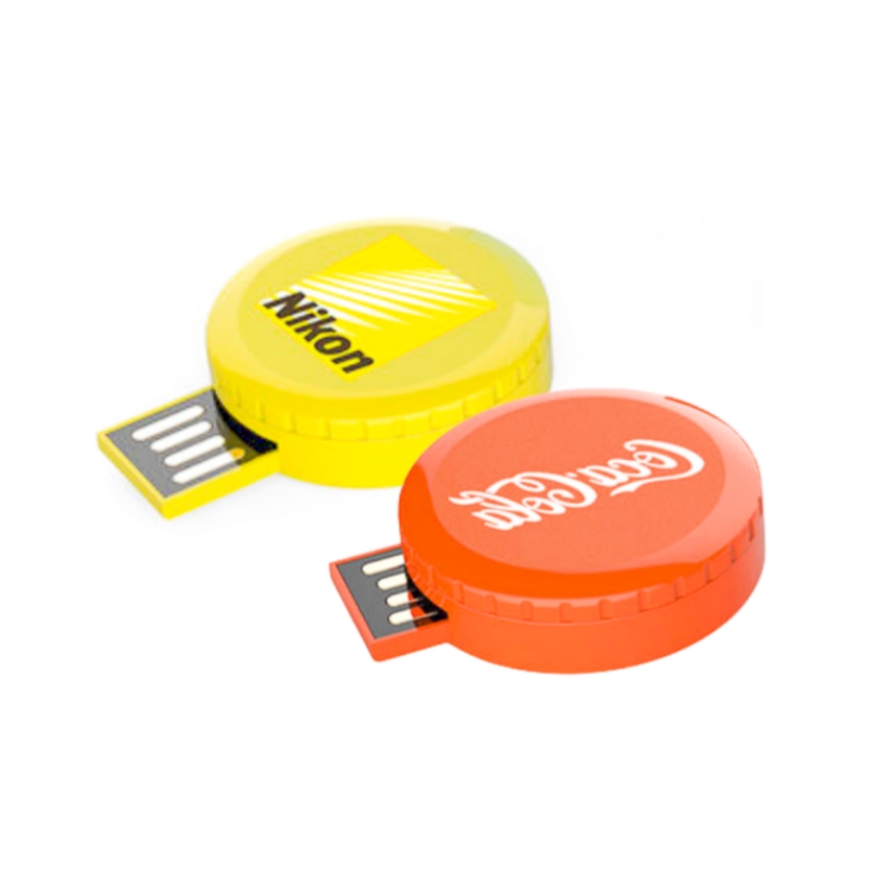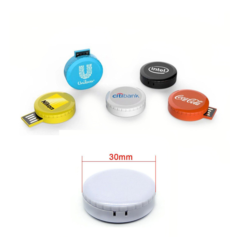 Custom logo button cell pen drive plastic round revolving USB flash drives