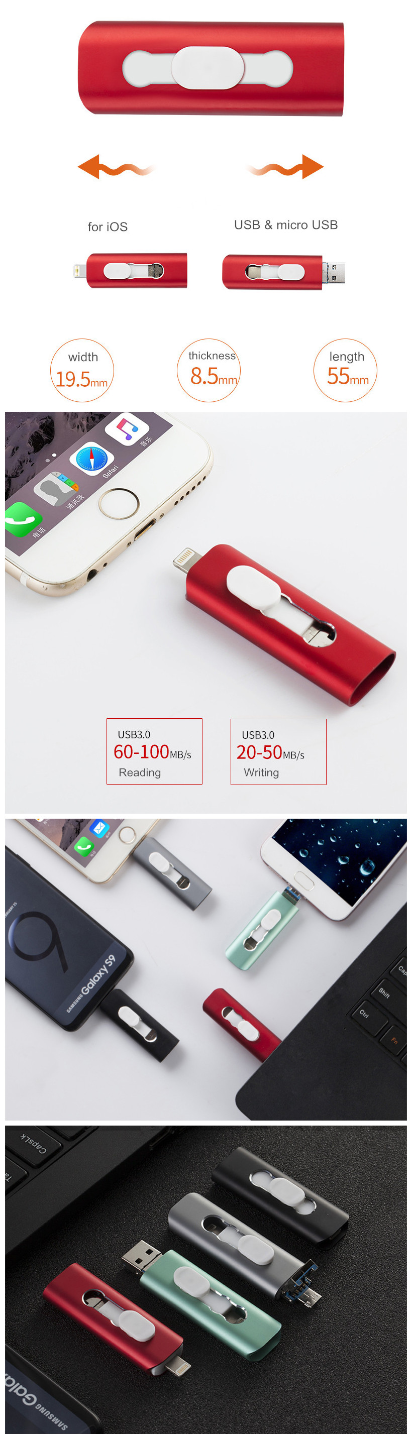 Corporate Gifts Sliding design USB stick High Speed 3-in-1 OTG USB Flash Drive